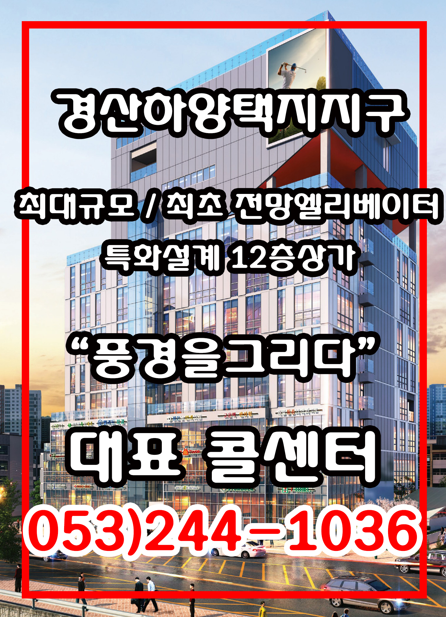 높은 고품격테라스 설계 상가의 가치를 한층 더 높이는 옥상정원,전망엘리베이터 최초 하양지구 최고 높이 12층 동서남북 전방향 뷰 |